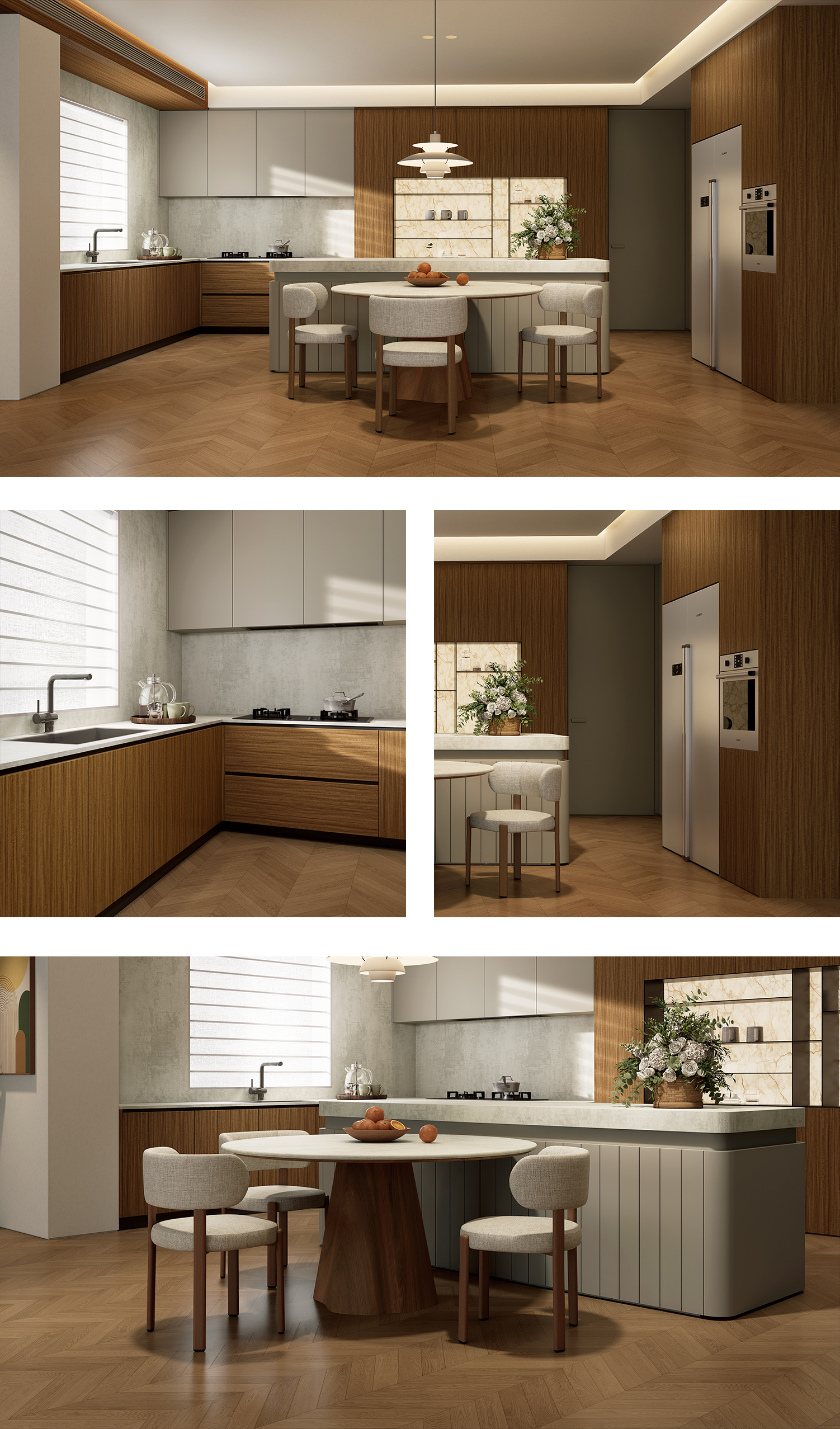 金柚木靈感源自熱帶森林中珍貴的柚木,承載著歲月的記憶。其紋理如流淌的金色河流,紋理直,少量波浪形或交錯狀,微砂感工藝還原柚木的真實肌理,觸手溫潤細膩。以醇厚的大地色調金色為基調,完美契合北歐的簡約、新中式的典雅與復古韻味,適用於房門、牆板、櫃門、櫃體及小件傢俱,為空間注入自然奢華的氣息。