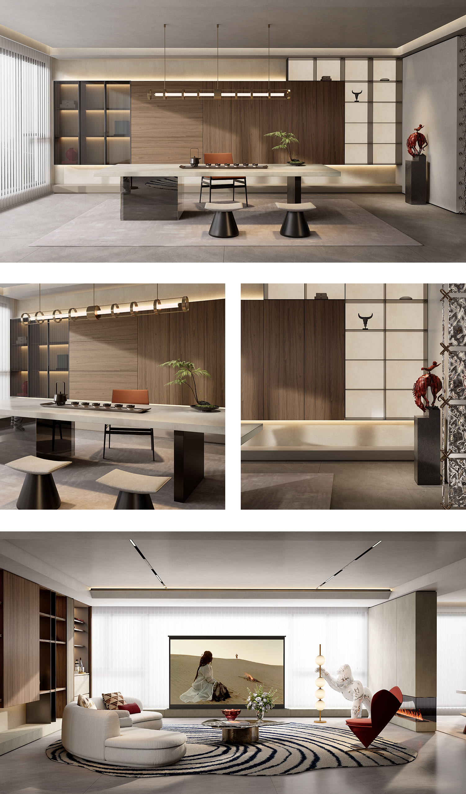 醇境棕胡桃,靈感源自北美原始森林中歷經時光淬煉的胡桃木。弦切面形成的大山形纹拼接直接,紋理層疊起伏,線條渾厚飽滿,似古老森林中盤根錯節的古木,展現出一種厚重而深邃的意境。觸摸時通過微砂感工藝,能感受到粗獷原始的觸感,又帶著歲月沉澱的溫潤。色調濃郁醇厚的大地色系,散發著沉穩而富有底蘊的氣息。適配現代風格的簡約質感、侘寂風格的質樸禪意與中式風格的沉穩風骨,為空間增添一份深邃禪意,營造出既現代又蘊含東方哲思的氛圍。