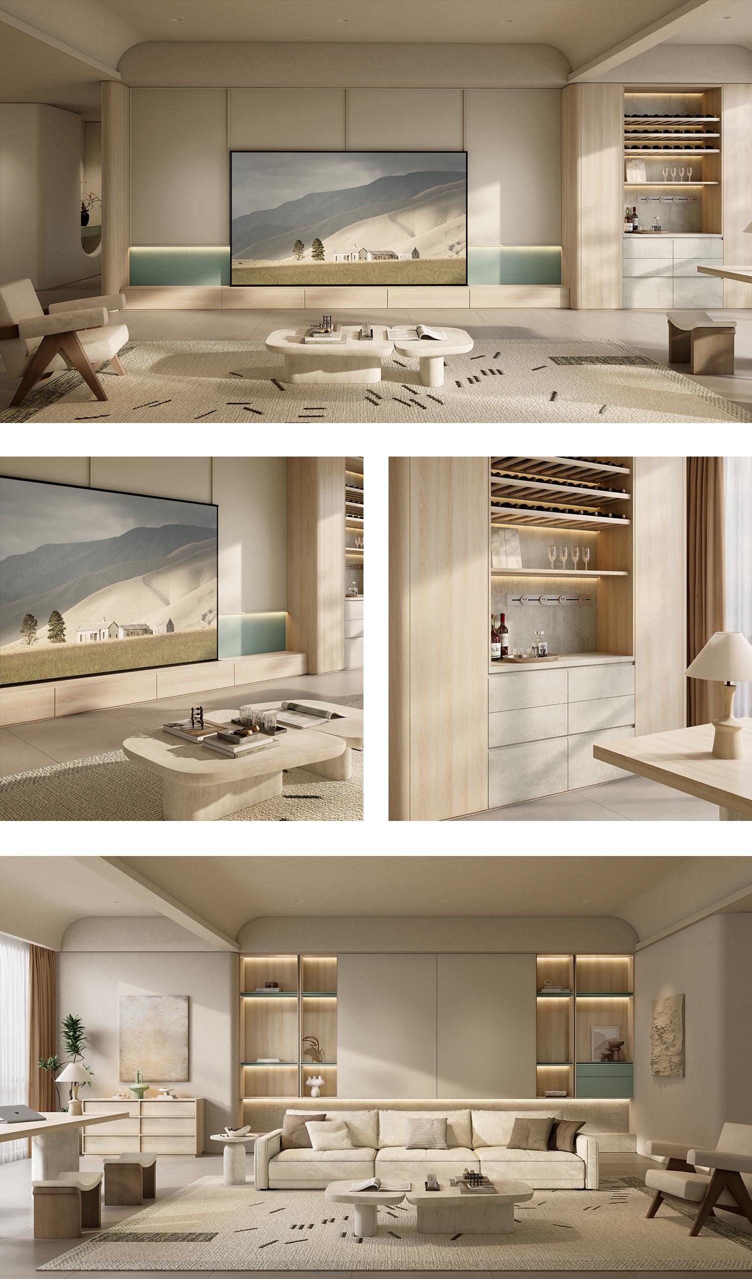 莊園白橡,靈感溯源至北歐莊園中沐浴晨光的白橡木,承載著自然的純淨記憶。自然的山形纹宛若工筆描繪的天然肌理,在木質表面勾勒出優雅而靈動的韻律。通過微砂感工藝,還原白橡木的真實肌理,觸感微澀而溫潤。它以清雅淺淡的木本色系為基調,在搭配上,無論是北歐風格崇尚的自然簡約,還是現代風格追求的凝練時尚,應用於房門、牆板、櫃門、櫃體及小件傢俱等,都能為家居空間注入清新雅致的自然氣息。