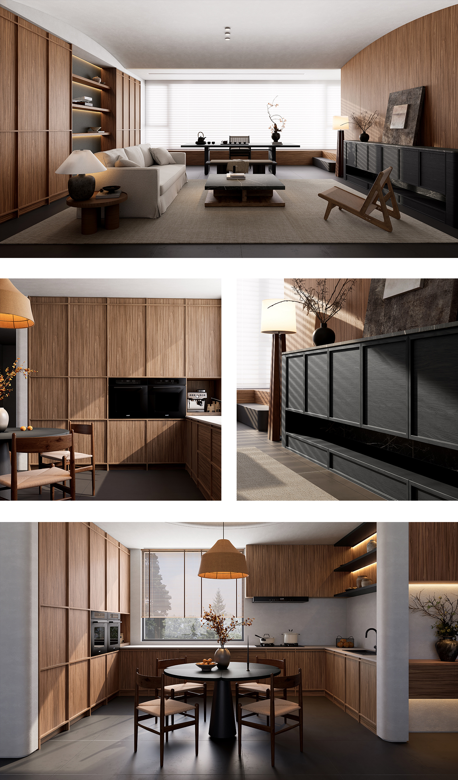 黑織紗,靈感源於東方傳統工藝中的黑色織紗。其紋理為細膩布紋,經緯交織的細密網格肌理,如亞麻布般質樸溫潤。獨特的微砂感工藝還原織物真實質感,指尖輕撫時既能感受到面料的細膩紋理,又帶著柔和的觸感體驗。色調選用經典的純黑無彩色系,宛若夜幕下輕揚的薄紗,散發著神秘而典雅的氣息。適配現代風格的簡約精緻、侘寂風格的質樸靜謐與中式風格的沉穩禪意,為居室注入低調奢華的氣質,營造出既現代又蘊含東方韻味的氛圍。